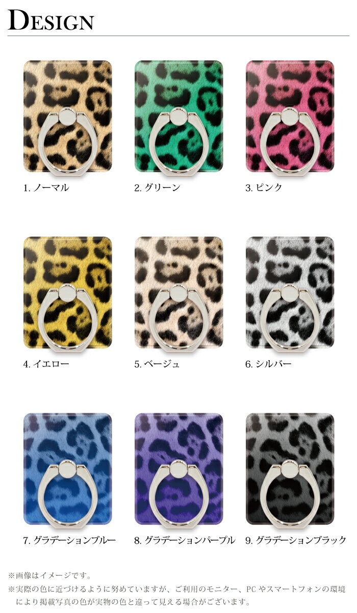 スマホリング ヒョウ柄 豹柄 アニマル柄 レオパード スマートフォンリング スマホスタンド 落下防止 360度回転 スタンド機能 バンカーリング ホールドリング タブレット リング プリント おしゃれ かわいい