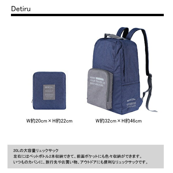 いつものカバンに、旅行先やお買い物、アウトドアにも便利なリュックサックです。