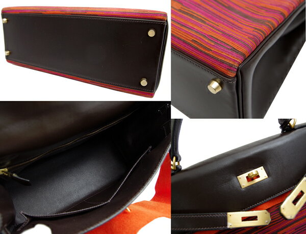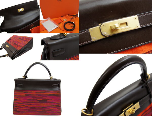 【極上】【美品】【HERMES】エルメス ケリー32 2WAY ハンド ショルダー バッグ ダークブラウン オレンジ/ピンク マット ゴールド 金具 ヴィブラート ボックスカーフ ケリー 32【中古】
